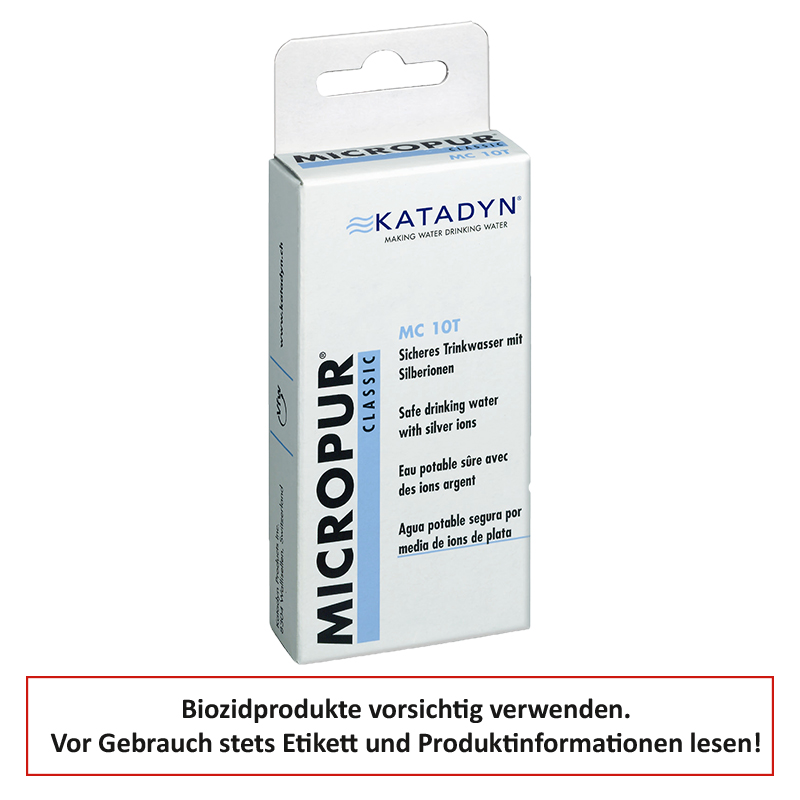 Biozidprodukte vorsichtig verwenden. Vor Gebrauch stets Etikett und Produktinformationen lesen!>Micropur entkeimt das Wasser und hält es bis zu 6 Monate frisch> Micropur zur Konsrvierung von WasserWie wirkt Micropur:Micropur tötet durch seine oligodynamisch wirksamen Silberionen im Wasser vorhandene vegetative Keime, insbesondere Erreger vonKrankheiten wie Typhus, Paratyphus, Dysenterie; Colibazillose, Cholera, ferner auch Viren von Influenze umd Mumps ab.