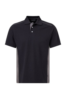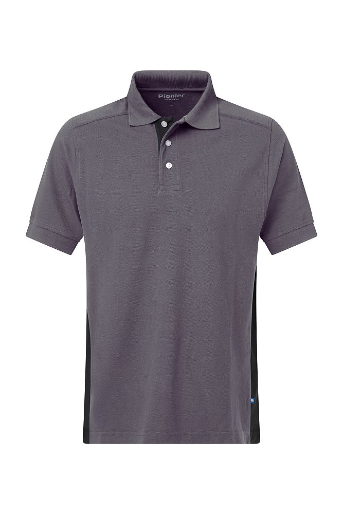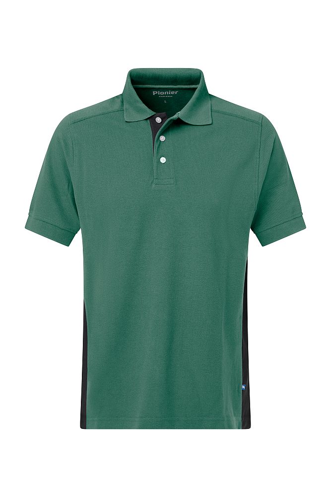 Knopflochleiste mit 3 Knöpfen zu verschießen, davon die Knopfleiste in Kontrastfarbe, Ärmelabschluss mit Bündchen, Rückenteil verlängert, Schulterpasse vorne und hinten mit Cover-Stich-Nähten, Kragenansatznaht hinten bis zu den Schultern mit Bändchen abgesichert