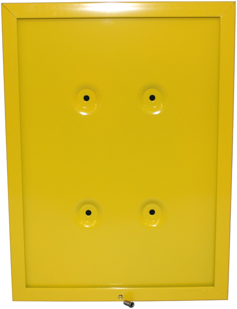 Alu gelb pulverbeschichtet RAL 1023mit Fahrplanhülle aus 2 x 0,8 mm starkem PVC und VerschlussschraubeDIN A3 hoch