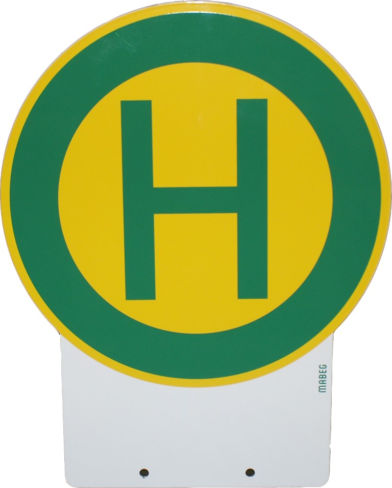 Kompaktschild aus Aluminium, 3 mm starkbeidseitig pulverbeschichtet in RAL 9016 Verkehrsweißbeidseitig H-Zeichen 224 StVO D. 350 mm im Siebdruck