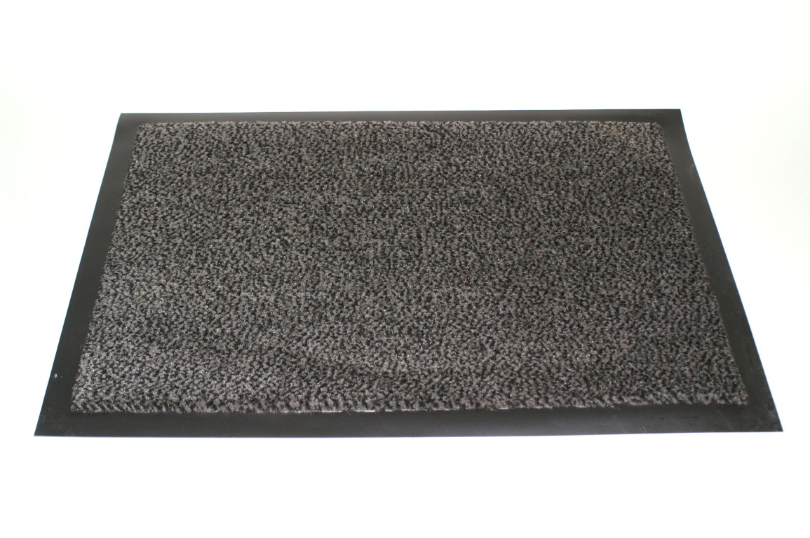 Maschinenwaschbare Matt (bei 30 Grad). Optimale Schmutz- und Feuchtigkeitsaufnahme. Extrem strapazierfähiger absolut rutschfestem PVC-Rücken. UV-beständig.Der 3 cm breite Rand liegt flach auf dem Boden auf und ist keine Stolperfalle. Besatz: ca. 750 g/qm