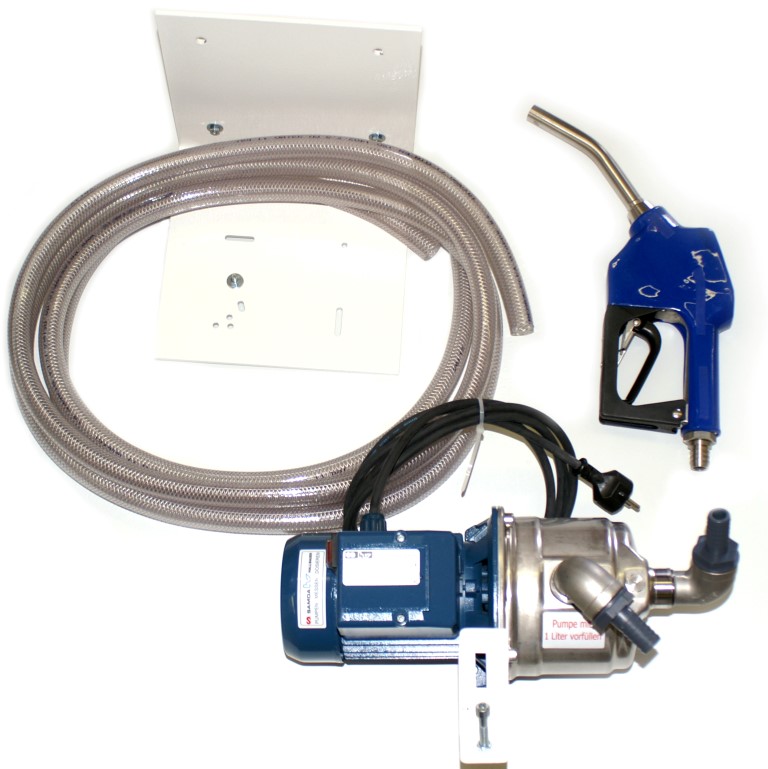 Passend für 60713 Ad Blue IBCEigenschaftenTrocken selbstansaugende Edelstahlpumpe für das schnelle Betanken mit AdBlue Ein-/Ausschalter mit Leuchtanzeige Druckschlauch 4 m, NW 19, G 3/4", mit Schlauchklemmen Pumpenhalter für IBC-Tank Saugschlauch 1 m, NW 19, mit Schlauchklemmen 3 m ölfestes Anschlusskabel mit Stecker, betriebsbereit 230 V, 50 Hz, Motorleistung 0,37 kW Förderleistung ca. 40 l/min bei freiem Auslauf