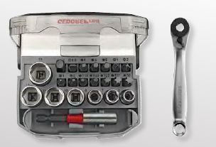 R4900 5023 BIT-KNARREN-SATZ 1/4" MIT BIT-FIX-ADAPTER COMPACT23-teiligBit-Knarre 1/4" umschaltbar, mit Antriebsadapter Steckschlüsseleinsatz 6-kant SW 6 7 8 10 11 12 13 mm,1/4" Bits Innensechskant 4 5 6 mm, 1/4" Bits Schlitz 5,5 mm, 1/4" Bits Kreuzschlitz PH 1 2,1/4" Bits Kreuzschlitz PZ 1 2, 1/4" Bits TX T15 T20 T25 T27 T30, Adapter 1/4" 4-kant x 1/4" 6-kant,Bit-Halter 1/4" 6-kant x 1/4" 6-kant, mit Magnet | 67 mm