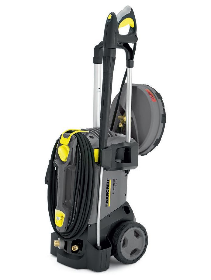 Der kompakte, leichte und vielseitig einsetzbare Kaltwasser-Hochdruckreiniger HD 5/15 C besticht durch ausgezeichnete Mobilität und eignet sich sowohl für stehenden als auch liegenden Betrieb. Das Gerät ist mit einer raffinierten Zubehöraufbewahrung ausgestattet und verspricht dank Messingzylinderkopf und automatischer Druckentlastung eine hohe Lebensdauer. Ausstattung:Anti-Verdreh System (AVS) 3-Kolben-Axial-Pumpe, mit Edelstahlkolben Druckabschaltung Lieferumfang:Grundgerät HD 5/15 C Plus Hochdruckschlauch 10 m Handspritzpistole, Easy Press mit Softgrip-Einlage Strahlrohr, drehbar Dreifachdüse manuell umschaltbar Dreckfräser Flächenreiniger ClassicTechnische Daten: Spannung: 230 V / 1 ~ Frequenz: 50 Hz Arbeitsdruck: 150 bar Max. Druck: 200 bar Fördermenge: 500 l/h max. Zulauftemperatur: 60 °C Anschlussleistung: 2,8 kW RM-Tank: - Anschlusskabel: 5 m Abmessungen (L x B x H): 380 x 360 x 930 mm Gewicht: 25,2 kg