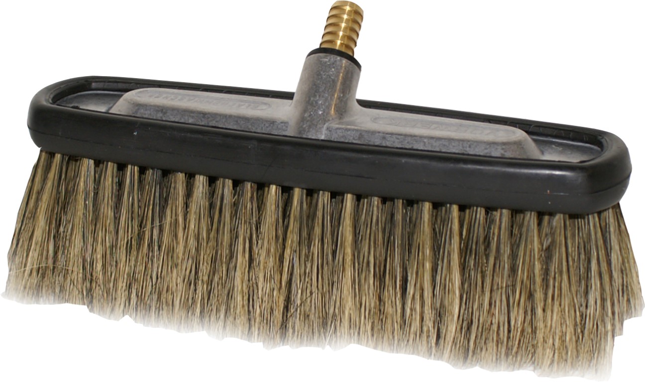 Waschbürste mit Alukörper mit Gummikantenschutz, dunkle, weiche Borsten, Größe ca. 26 x 8 cm, mit 1/2" Messing-Anschlusstülle, passend für alle Wasserstangen oder mit Adapter 60025 auf alle Teleskopstangen.