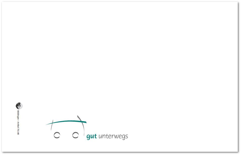 Versandhüllen Format C4 ohne Fenster, Papier weiß, Haftklebung mit Abziehstreifen, mit Aufdruck "Gut unterwegs", 2-farbig, Karton á 250 Stück ohne Fenster, Karton á 250 Stück