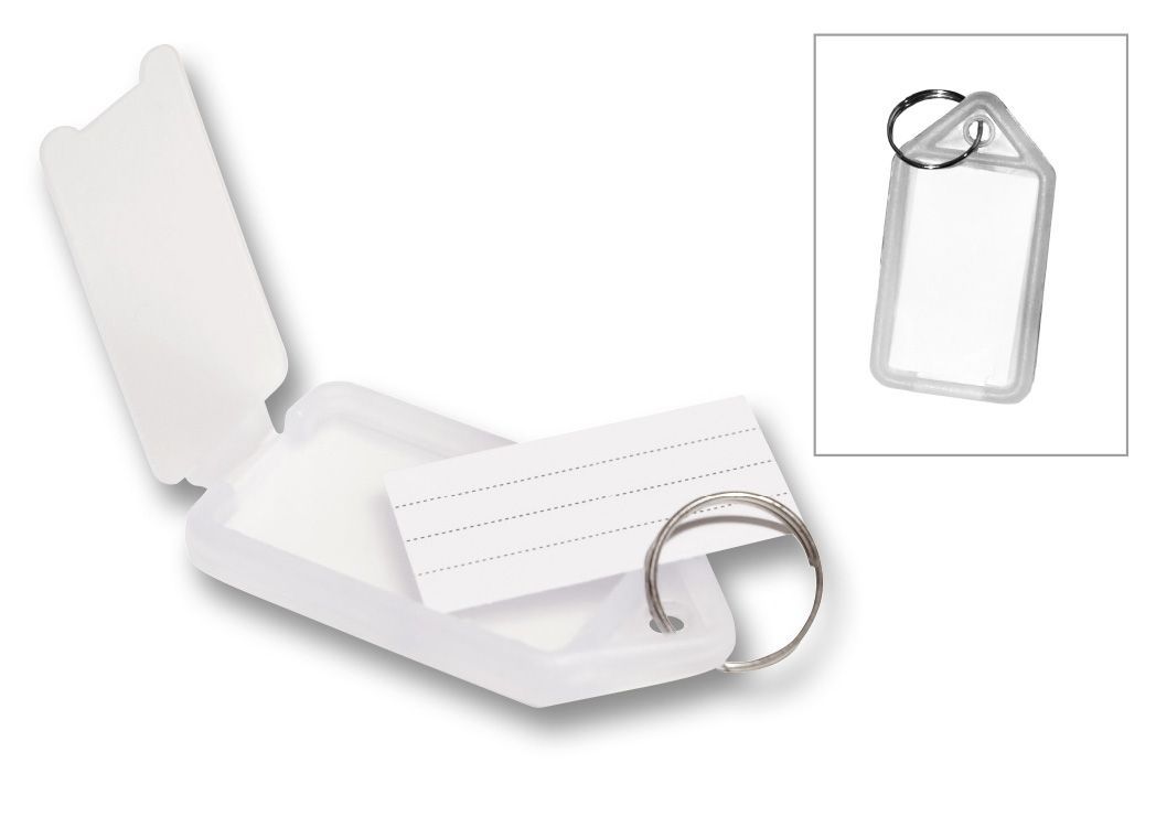 Schlüsselanhänger Multi, aufklappbar mit innenliegendem Beschriftungsschild, inkl. Schlüsselring, mit Etikett, transparent.VE = 1 Pack mit 100 Stück.